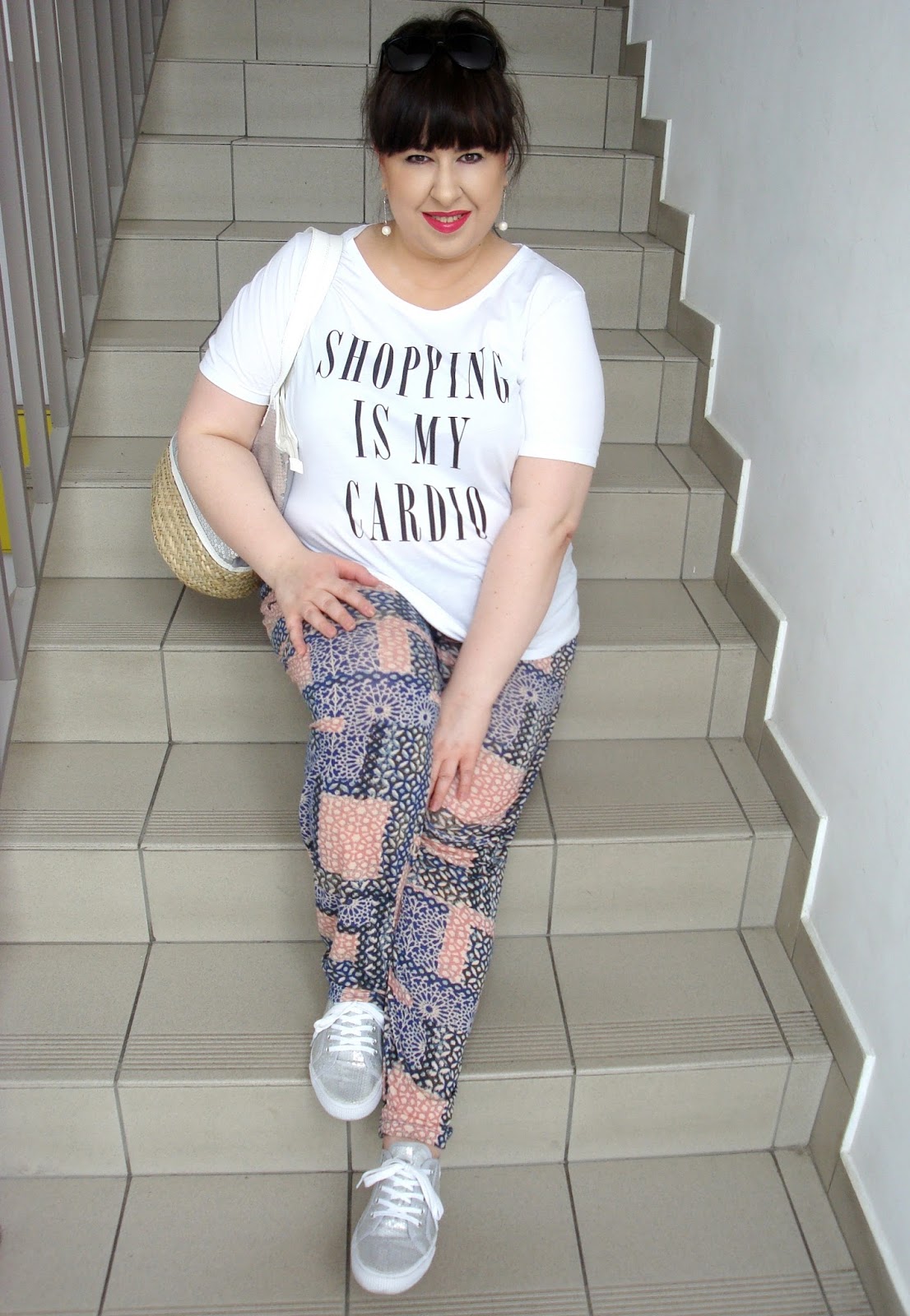 Moją koszulkę z napisem "Shopping is my cardio" znacie już z wcześniejszego wpisu. Kupiłam ją w Tchibo. :)